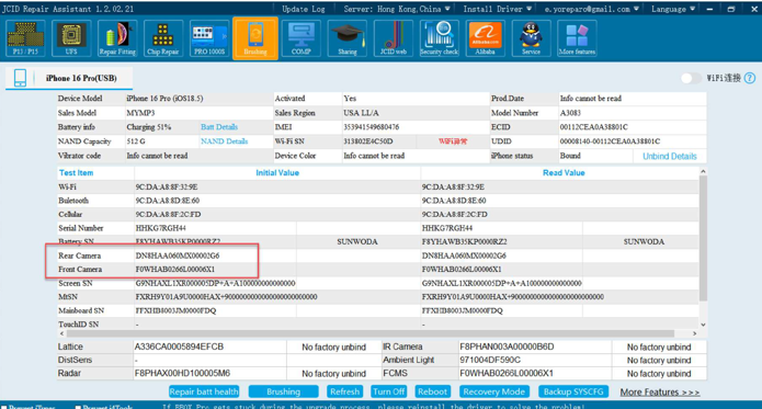 Abre JCRepair y verifica si el equipo lee los números de serie de las cámaras.